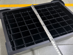 Below is a recent ESD honeycomb board tote box we produced for a French electronics client — 400×300×220 mm with precision grid dividers, rivet-reinforced corners, and die-cut handles.
